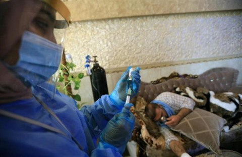 Une infirmière prépare une seringue au domicile d'un malade atteint du COVID-19, à Erbil, la capitale du Kurdistan irakien, le 3 novembre. Photo : AFP/VNA/CVN |