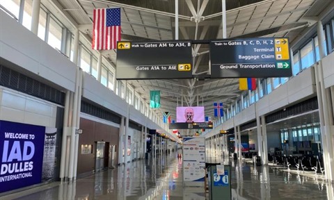 | Une vue d'un hall désert de l'aéroport international de Washington-Dulles, États-Unis, le 10 novembre. |