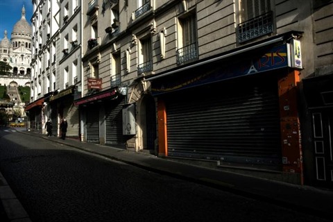 | Des magasins pour touristes fermés dans le quartier de Montmartre à Paris, le 14 novembre. |