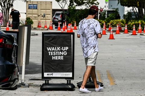 | Un homme sort d'un centre de test à Miami Beach, Floride, le 17 novembre. |