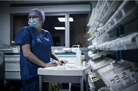 | Un professionnel de santé prépare des médicaments dans une unité consacrée aux malades du COVID-19 à Bruges (Gironde), le 3 décembre. |