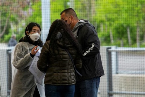 | Des gens arrivent dans un centre de vaccination contre le COVID-19 à Brooklyn, New York, le 8 mai. |