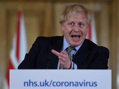 | Le Premier ministre Boris Johnson, le 18 mars à Londres |