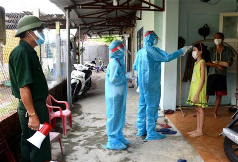 | Prendre la température corporelle des habitants de Dà Nang (Centre) pour la lutte contre le COVID-19. |