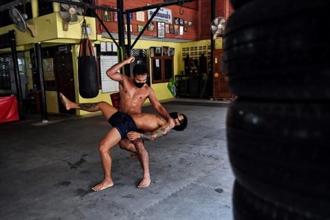 "J'ai commencé le muay thaï (la boxe thaï, ndlr) à 11 ans. C'est toute ma vie. Du jour au lendemain, tout s'est arrêté", soupire Somiong. Avant la pandémie, le combattant de 24 ans s'entraînait sept heures par jour et gagnait jusqu'à 600 dollars (550 euros) par mois grâce aux tournois, soit davantage que la plupart des salaires dans le pays.
