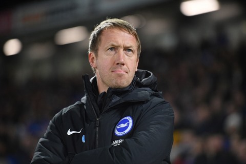 | Le coach de Brighton, Graham Potter, avant une rencontre, le 8 février 2020 à Brighton. |