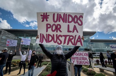 | Manifestation en Colombie contre le nouveau confinement décidé par la maire de Bogota Claudia Lopez, à Bogota, le 21 août 2020. |