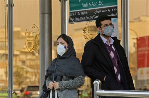 | Des Iraniens portant des masques contre le nouveau coronavirus attendent à une station de bus à Téhéran, le 24 février. |