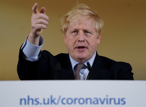 | Le Premier ministre Boris Johnson lors d'une conférence de presse consacrée au COVID-19, le 16 mars à Londres. |