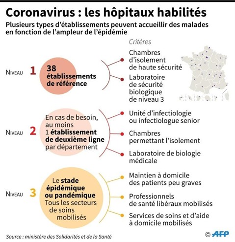 | Infographie expliquant les différents type d'hôpitaux habilités à prendre en charge des patients atteints de COVID-19. |