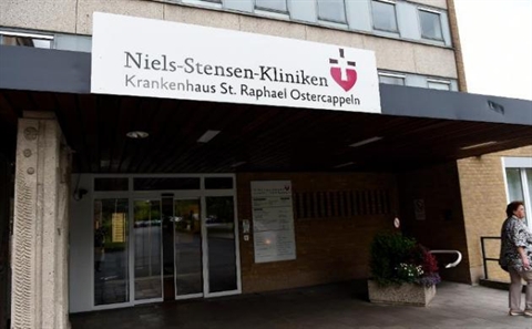 | L'entrée de l'hôpital où est décédé un Allemand de 65 ans "des suites" d'une contamination par le coronavirus Mers à Ostercappeln en Allemagne, le 16 juin. |