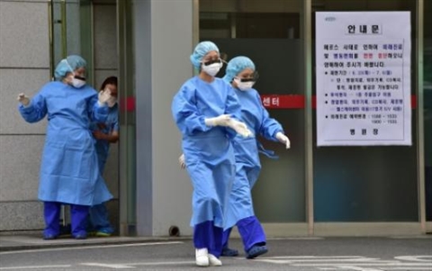 | Le personnel médical dans un centre spécialisé pour les personnes contaminées par le coronavirus Mers, le 24 juin à Séoul. |