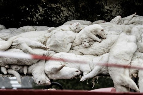 | Des visons abattus dans une ferme d'élevage à Farre, le 28 octobre au Danemark. |