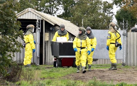 | Des employés de l'administration vétérinaire danoise arrivent dans une ferme d'élevage pour procéder à l'abattage de visons, le 8 octobre à Gjol. |