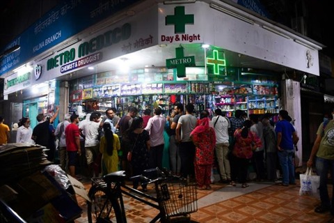 | Devant une pharmacie à Mumbai, en Inde, le 24 mars. |