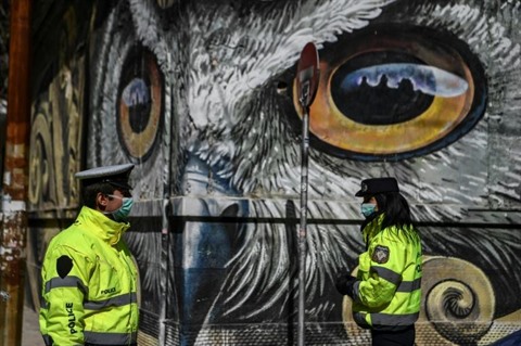 | Des policiers grecs patrouillent à Athènes, le 9 avril. |