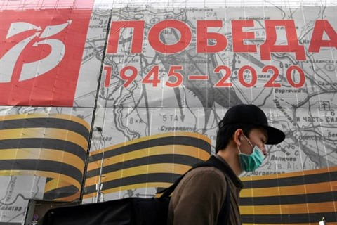 | Un homme porte un masque de protection, le 19 avril à Moscou. |