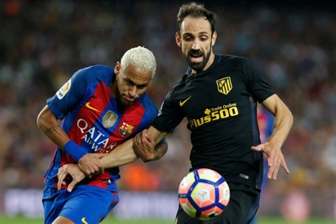 | Neymar (gauche) face à Juanfran lors du match Barça-Atlético Madrid, le 21 septembre 2016 au Camp Nou. |