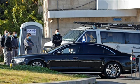 | Le véhicule du Premier ministre israélien Benjamin Netanyahu en route pour le tribunal de Jérusalem, le 21 février. |