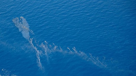| Photo fournie par l'Armée de l'Air montrant des hydrocarbures en mer le 12 juin à l'Est de la Corse. |