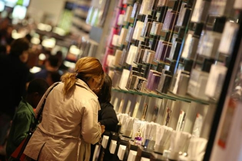| Les rayons cosmétiques du magasin Sephora des Champs-Élysées, à Paris. |