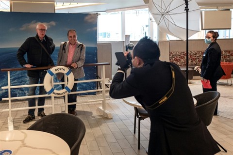 Dans le terminal d'embarquement qui les accueille dans le port de Savone, les passagers font patiemment la queue pour se faire prendre la température, subir un test antigénique et remplir un formulaire sanitaire : c'est le sésame pour monter à bord du navire, une fois remplis tous les critères requis.