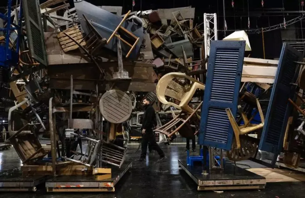 Le spectateur découvrira ainsi trois suspensions de 2,5 tonnes de meubles et d'objets anciens accrochées au-dessus de la scène dans cette nouvelle production lyrique, pensée dans une optique de durabilité et de réutilisation, avec des procédés d'"arte povera", le mouvement artistique radical italien.