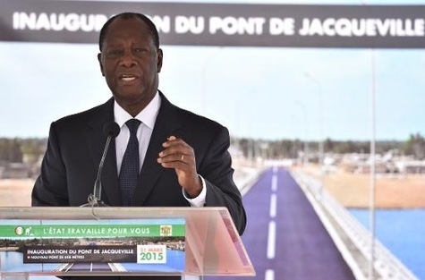 Sous sa houlette, la Côte d'Ivoire, premier producteur mondial de cacao, a retrouvé une croissance très forte, d'environ 9% par an entre 2012 et 2014, soutenue par un investissement public fort. Le troisième pont enjambant la lagune d'Abidjan, chantier monumental désormais en fonction, constitue le symbole de son premier mandat.