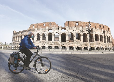 | Un homme porte un masque de protection contre le COVID-19, à Rome. |