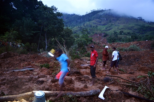 | Une centaine de personnes sont enterrées vives par des coulées de boue consécutives à de fortes pluies de mousson, le 29 octobre au Sri Lanka. |