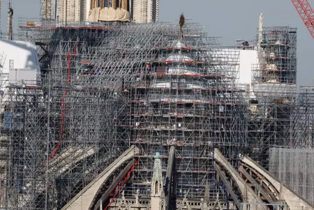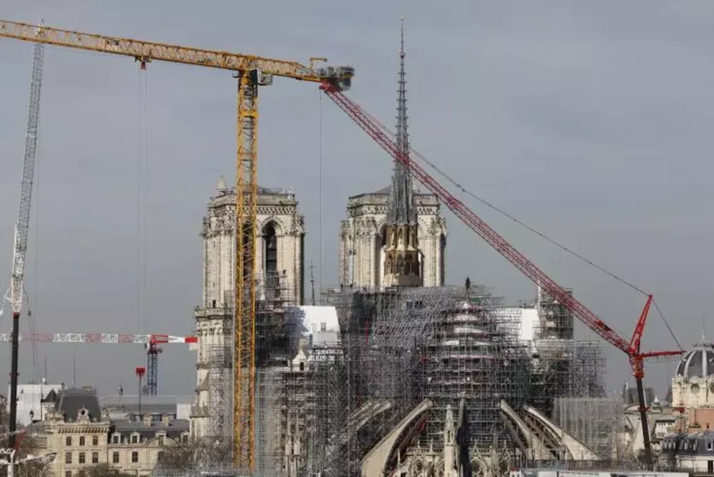 | Les travaux de reconstruction de Notre-Dame de Paris le 14 mars. |