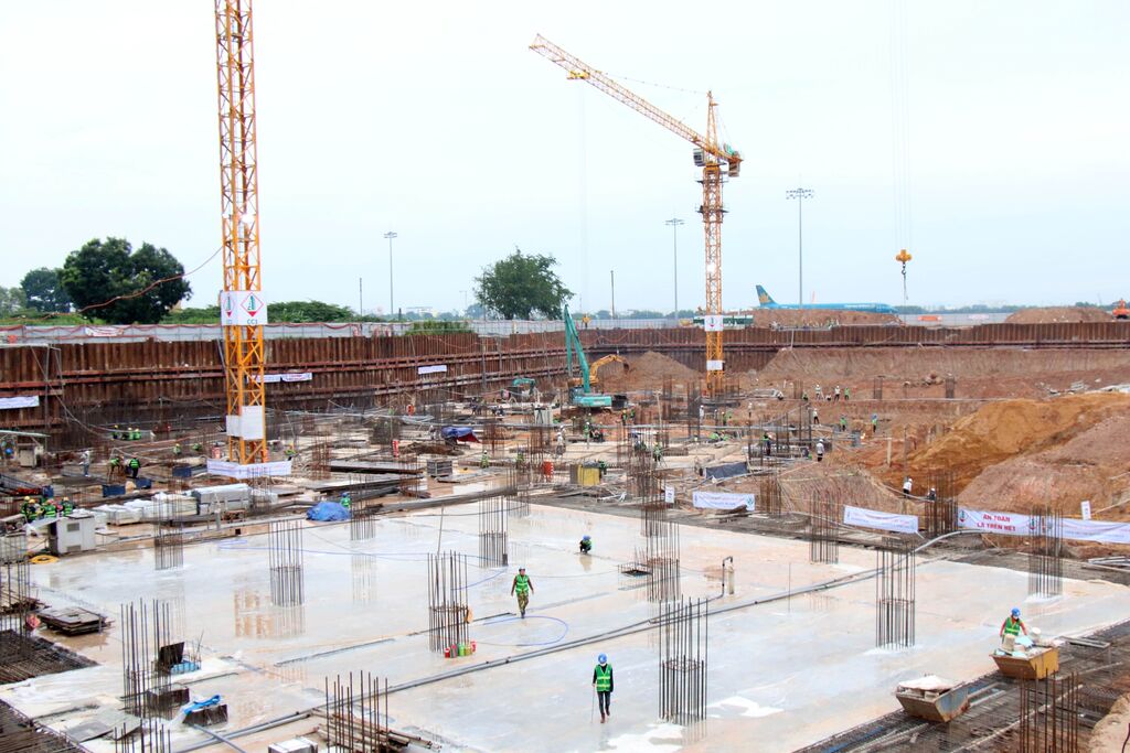 | Sur le chantier de construction du projet du terminal passagers T3 de l'aéroport international de Tân Son Nhât. |