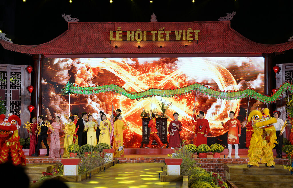 La cérémonie d'ouverture, dans une atmosphère joyeuse et animée, a reproduit les coutumes du Têt traditionnel du Sud à travers un programme artistique majestueux. On peut citer la cérémonie d'érection du cây nêu (perche rituelle) du Têt, la reconstitution d'un espace du Têt traditionnel dans trois maisons vietnamiennes avec la cérémonie d’offrandes sur l’autel des ancêtres, et des plateaux du Têt présentant des plats traditionnels des trois régions (Nord - Centre – Sud).