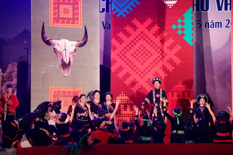 | Un programme artistique lors de la cérémonie d'ouverture du marché de l’amour de Khâu Vai. |
