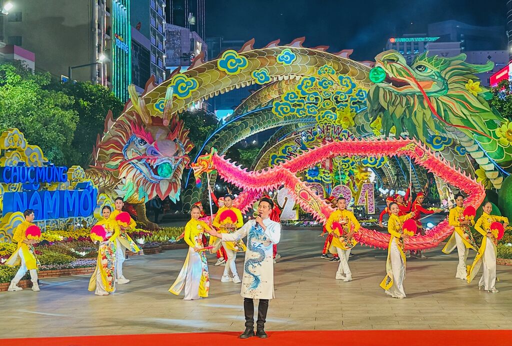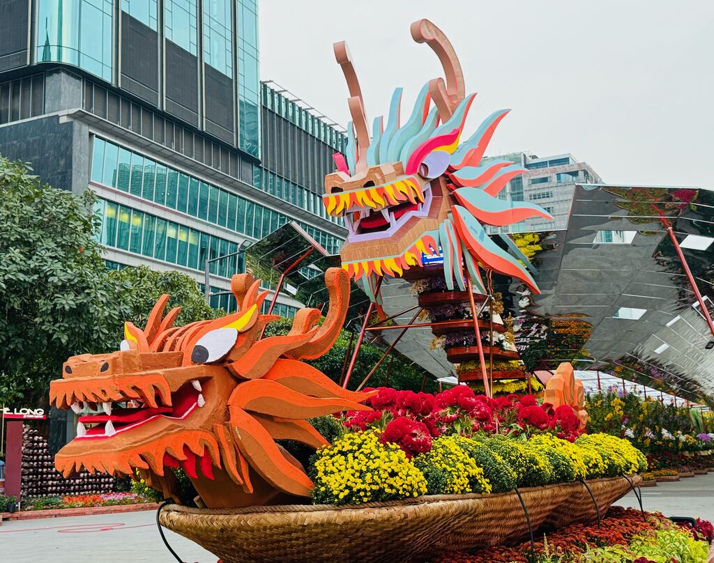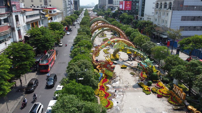 “La rue florale Nguyên Huê 2024 est la cristallisation de l'intelligence, du talent et de l'enthousiasme des artisans, des ingénieurs et des ouvriers. Avec un concept unique et à grande échelle, elle promet d'être le point culminant des festivités culturelles du Têt traditionnel de Hô Chi Minh-Ville, attirant un grand nombre de citoyens et de touristes locaux et internationaux. La majestueuse porte d’entrée expose une grande scène représentant +Les deux dragons se tournent vers le lotus+, mascotte de l'année 2024 qui rappelle à tous l'origine du peuple vietnamien +descendant du Dragon et de la Fée+ et la descente du Dragon dans le monde des humains, de bon augure pour la Nouvelle Année", a déclaré le vice-président Duong Anh Duc.