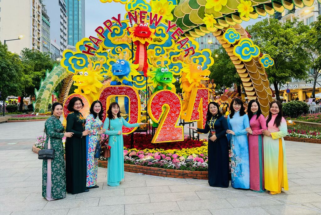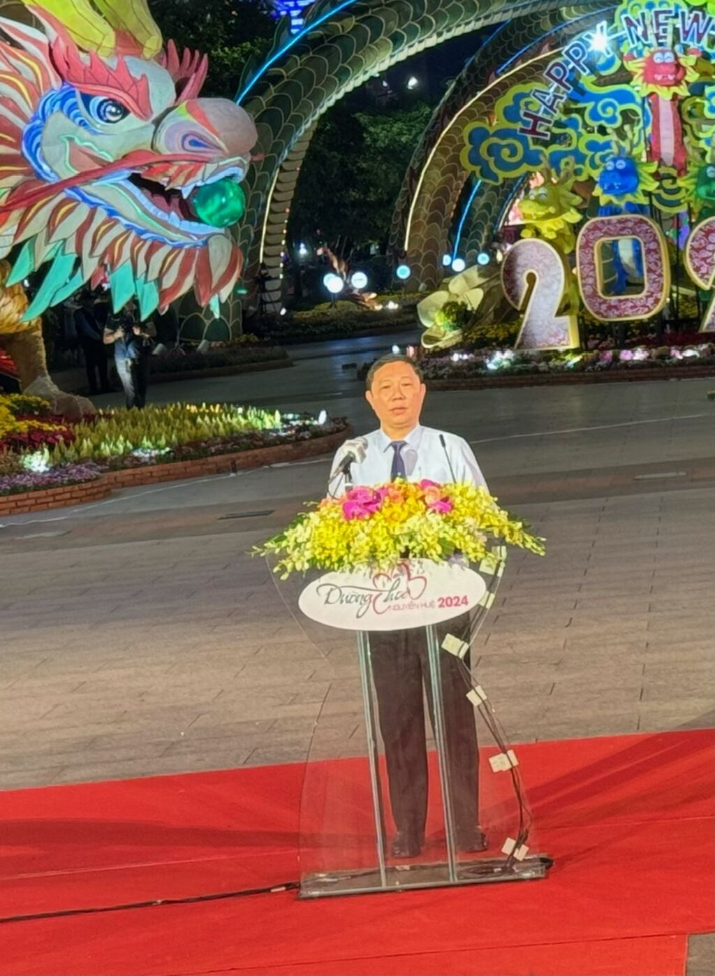 “À la veille du Têt traditionnel du Dragon, au nom des dirigeants de la ville, je voudrais adresser aux dirigeants, aux ex-dirigeants, aux compatriotes de Hô Chi Minh-Ville, aux Vietnamiens d'outre-mer et aux touristes, mes meilleurs vœux de bonne santé, de sécurité, de bonheur et de prospérité ! Nous espérons que tous nos compatriotes ainsi que tous les touristes passeront d’agréables moments en vivant ce Têt traditionnel du Dragon, printemps de l'amour et en profitant de la rue florale Nguyên Huê 2024", a confié le vice-président Duong Anh Duc.