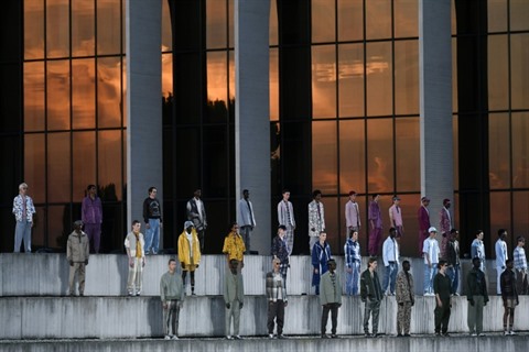 | Les mannequins du couturier Ermenegildo Zegna à la fin du défilé, le 15 juin à Milan en Italie. |