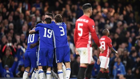 | Les Blues de Chelsea, vainqueurs de Manchester United en quart de finale de la Coupe d'Angleterre, le 13 mars à Stamford Bridge. |