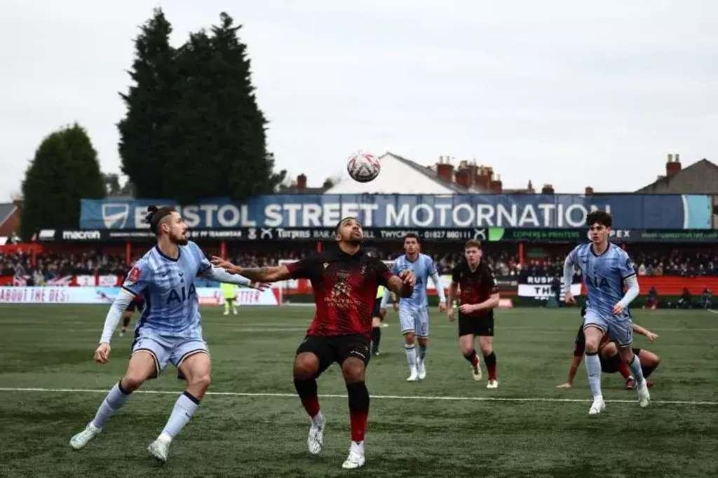 | Tottenham sur le terrain de Tamworth, 16e de National League (D5), en Coupe d'Angleterre, le 12 janvier. |