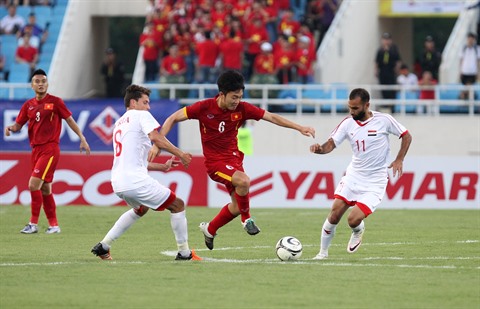 | L'équipe nationale du Vietnam (maillot rouge) a besoin beaucoup d'efforts pour se qualifier jusqu’aux huitièmes de finale de la Coupe d'Asie de football 2019. |