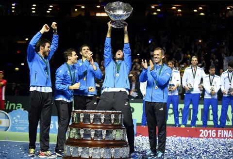 Tous ses champions, Guillermo Vilas en 1981, David Nalbandian en 2006 et Del Potro lui-même en 2008 et 2011, avaient échoué sur la dernière marche. L'Argentine était la seule grande nation du tennis à ne pas avoir son nom gravé sur le Saladier d'argent.