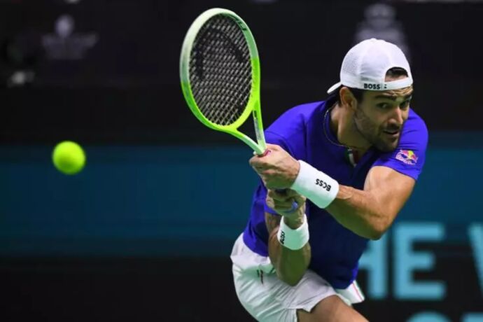 Héros de la victoire italienne lors du Final 8 de 2024 - il avait gagné le double décisif en quarts, puis le premier simple en demie et en finale - Berrettini a débuté en fanfare, par un jeu blanc sur son service.