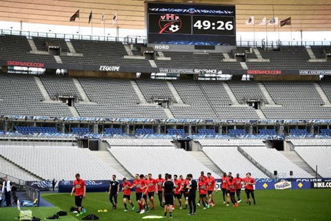 | L'équipe des Herbiers lors d'un entraînement au Stade de France, le 7 mai, à la veille de la finale de la Coupe de France contre le PSG. |