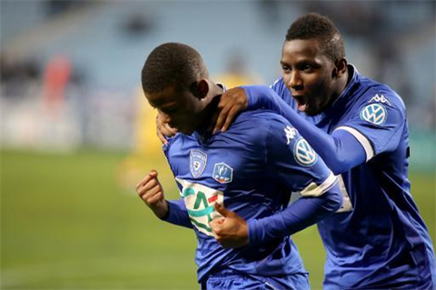 | Le milieu bastiais Floyd Ayité (gauche), auteur d'un doublé contre Lille en 32e de finale de la Coupe de France, le 3 janvier au stade Armand Cesari. |
