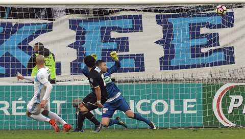 | Le défenseur brésilien Doria inscrit le but de la victoire face à Lyon en Coupe de France, le 31 janvier au Vélodrome. |