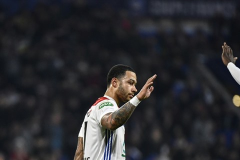 | L'attaquant néerlandais de l'OL, Memphis Depay, auteur du 3e but face à Caen en quart de finale de Coupe de France, le 27 février à Lyon. |