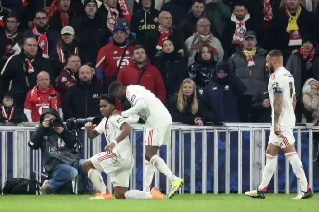 Après plusieurs vaines tentatives, dont l'une a été déviée sur son poteau par Arnaud Bodart, le gardien lillois, Endrick a réussi à trouver l'ouverture de près juste avant la mi-temps pour donner définitivement l'avantage aux siens.