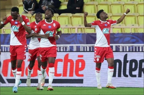 | Monaco, lancé par un but d'Aurélien Tchouaméni (droite), a aisément dominé Amiens en quart de finale de la Coupe de France à Louis II, le 8 février. |
