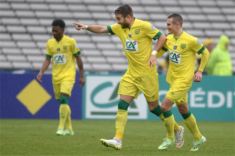 | La joie du Nantais Lucas Deaux et de ses coéquipiers après son but contre le Club Franciscain en 32e de finale de la Coupe de France, le 3 janvier à Nantes. |