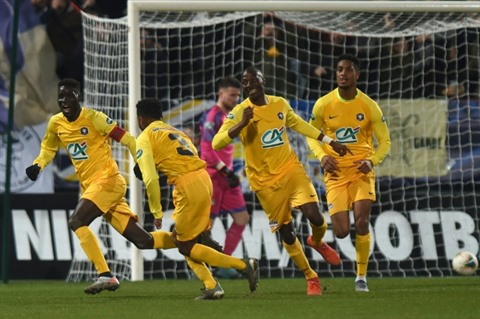 | Les joueurs de Pau se sont offerts le scalp de Bordeaux grâce notamment à un but de leur capitaine Name Moustapha en Coupe de France au stade du Hameau, le 16 janvier. |